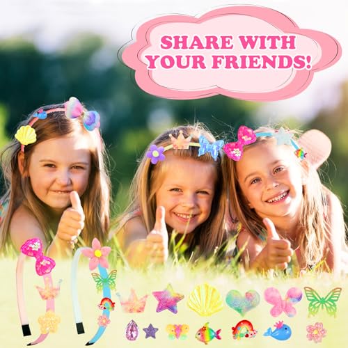 Yoirzit Accessori per Capelli per Bambine, 5-12 Anni Regali per Ragazze, Ragazze Accessori Capelli, Giocattoli D'Arte Per Creare Accessori Per Capelli Unici & Giochi Bambina (50 accessori)