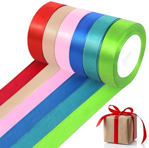 Yoirzit Nastro Raso, 6 Rotoli 25mm x 22 M Nastro Regalo, Nastri Colorati, Nastrino per Bomboniere, Torte, Natale Albero San, Compleanno
