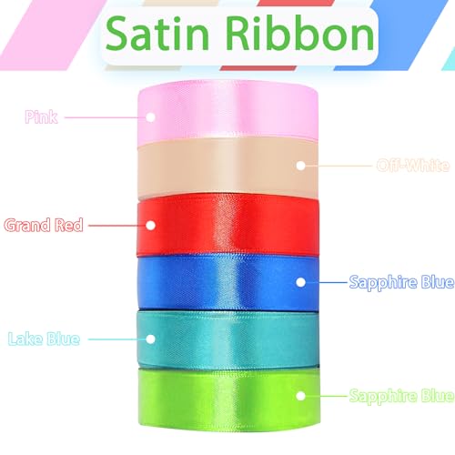Nastro Regali Confezionare - contiene rotoli di nastro di raso in 6 colori. L*L: 22 M* 25 mm. Colori: rosso, blu, rosa, blu lago, color albicocca, verde, 1 rotolo ciascuno. Può essere tagliato a qualsiasi lunghezza necessaria. Perfetto per progetti di bricolage e cucito.
