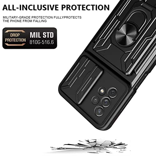NA YoJiong Cover per Samsung Galaxy A32 4G (6,4''), Protezione Fotocamera [Slidable] Custodia Rigido PC Anti Graffio Antiurto Grado Militare 360° Anello Supporto con Slot per Schede - Blu
