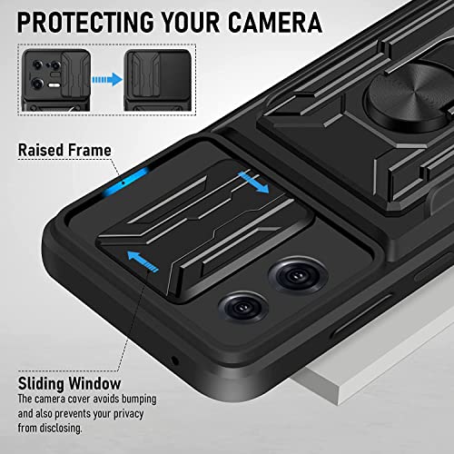 Yojiong Cover per Xiaomi 13 (6.36"), Protezione Fotocamera [Slidable] Custodia Rigido PC Anti Graffio Antiurto Grado Militare 360° Anello Supporto con Slot per Schede - Nero