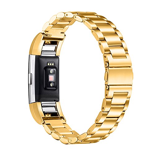 YOJOCK Cinturino per Fitbit Charge 2 Band Cinturino Regolabile in Acciaio Inossidabile 316L con Cinturino di Ricambio per Fitbit Charge 2 (Oro)