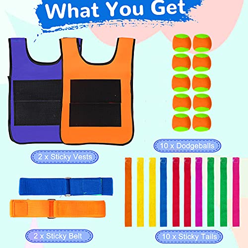 Yojoloin Gioco all'aperto Giocattoli da Giardino per Bambini, Dodgeball Tag Gilet appiccicoso Cintura appiccicosa con Code di Palline, Lancio di Palla da Lancio e Coda da tiro 2 in 1 24 Pezzi