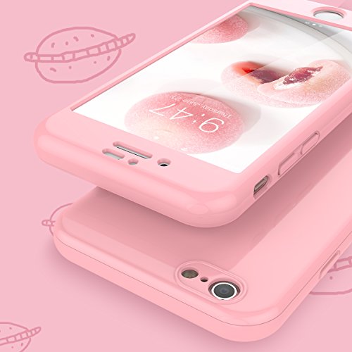 Yokata Cover per Apple iPhone 6S/6 360 Gradi + Pellicola Protettiva Vetro Temperato Rigida Custodia Apple iPhone 6S/6 Full Body Ultra Slim Protettiva Caso Duro Premium Macaron Case - Rosa
