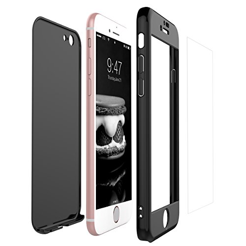 Yokata Cover per Apple iPhone 6S/6 360 Gradi + Pellicola Protettiva Vetro Temperato Rigida Custodia Apple iPhone 6S/6 Full Body Ultra Slim Protettiva Caso Duro Premium Macaron Case - Nero