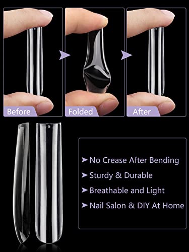⭐【Punte Per Unghie Extra Lunghe In ABS Professionali】 Le punte per unghie finte trasparenti 3XL sono realizzate in materiale ABS di alta qualità, che è forte, non facile da deformare, non facile da rompere, non tossico, non avrà alcun effetto sulle tue unghie, dandoti un'esperienza di nail making sicura e confortevole.
