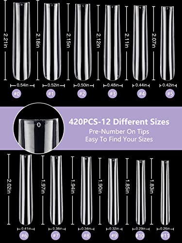 ⭐【12 Misure Di Unghie Finte Acriliche】 Le unghie finte acriliche da 420 pezzi offrono 12 diverse dimensioni (numero 0-11) per soddisfare le esigenze di ogni dito, 36 unghie di ogni dimensione. Quantità e dimensioni sufficienti per creare nail art. Con la scatola è facile da trasportare, protegge le unghie dai danni e conveniente per scegliere la taglia adatta.