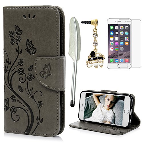 YOKIRIN, custodia per iPhone 6 Plus/6S Plus (5,5") custodia a portafoglio, con motivo farfalla e fiori, modello flipcase, custodia protettiva in simil pelle, custodia stile libro, per iPhone 6 Plus/6S
