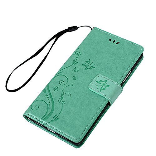 Yokirin, custodia P9 Lite, per Huawei P9 Lite da 5,2 pollici, in pelle sintetica, motivo a fiori e farfalle, cover a portafoglio, retrocopertura a libro, funzione di supporto, con slot per carte di credito, con protezione antipolvere e penna