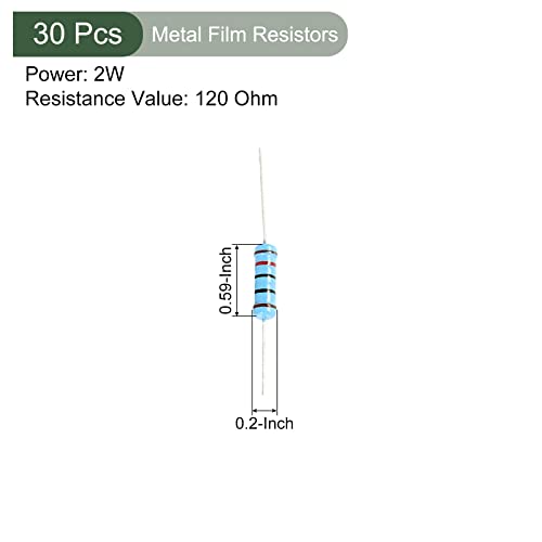 YOKIVE 30pz Metallo Pellicola Resistenza, Kit Assortimento Resistenze con 2W 1% Tolleranza 120 Ohm, Ignifugo, Assiale cavo, Buono per Fai-da-Te Progetti Elettronici