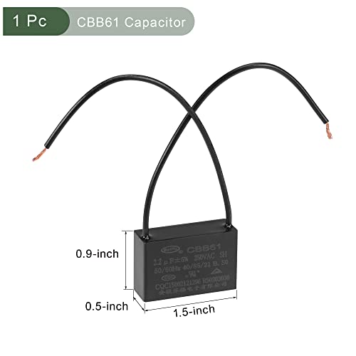 COSA SI OTTIENE - La confezione include 1pz CBB61 Condensatore con 2 fili, la tensione nominale è di 250V AC, la capacità nominale è di 2.2uF (±5%), la frequenza nominale è 50/60Hz, la categoria climatica è 40 /85/21, la lunghezza del filo è 120mm/4.7'', dimensioni calotta: 37x24x13mm/1.5x0.9x0.5''.
