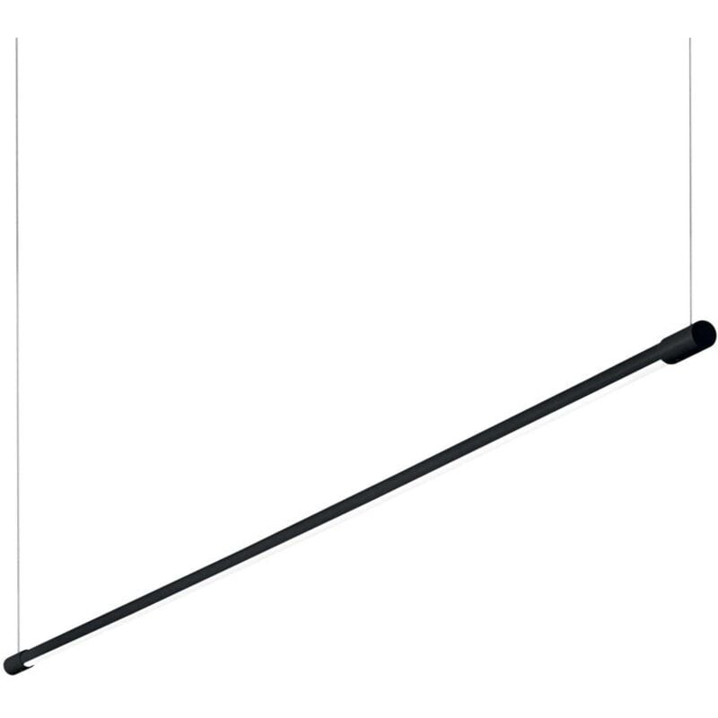 Rosone, montatura e supporto per il cavo in metallo verniciato opaco. Diffusore in policarbonato opale. Cavo in pvc trasparente. Colori: bianco o nero. L 1460 x H min 270 / max 2120 x P 20 mm LED 16W 30000 h 3000 K 1450 lumen IP:20