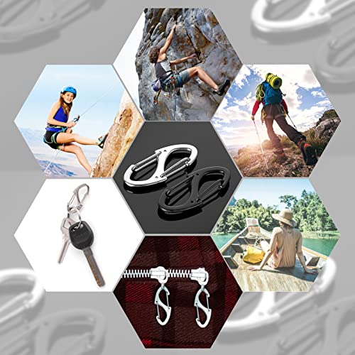 【Incastro Flessibile】 Doppio gancio Il nostro moschettone ha un processo di incastro, puoi usarlo per collegare corde, chiavi, corde per animali domestici, targhette, catene, ecc., Ma ricorda di non lasciare che regga oggetti pesanti, perché la sua tensione del cuscinetto è piccolo