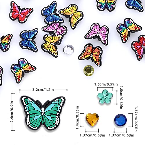 Yolev 24 Pezzi Scarpe a Farfalla con Strass Colorati Fibbia per Scarpe in PVC per Sandali e Ciabatte