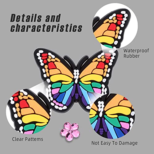 【Ampia Applicazione】La divertente decorazione delle scarpe a farfalla combinata con le tue scarpe può rendere le tue scarpe più interessanti, uniche e accattivanti, perfette per scarpe da ginnastica, sandali, pantofole, braccialetti con fori, ecc