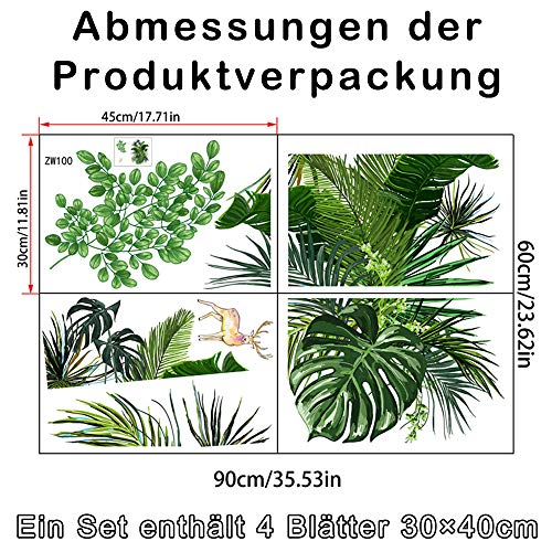Yolistar Adesivi Murali Pianta Tropicali 30 X45cm 4pcs, Adesivi da Parete Foglie Verdi, Impermeabili per Decorazione Interni Sticker Adatto per Camera Da Letto, Soggiorno, Parete di Fondo Tv (4 Pezzi)