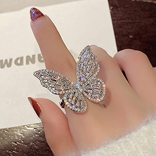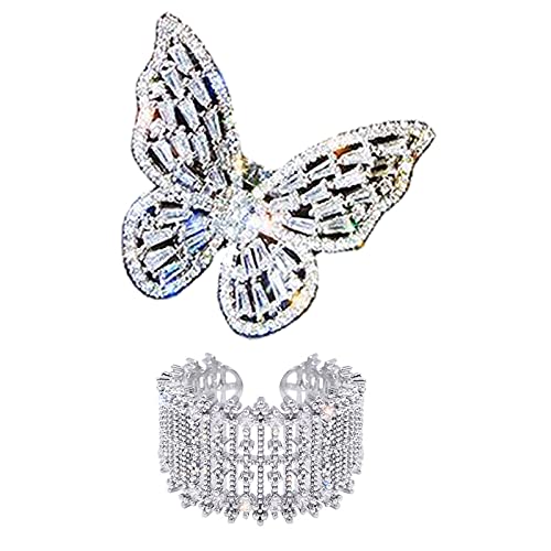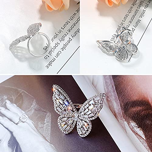 Yolistar Anelli Donna, Anelli Sparkle con Strass di Moda, Anello a Forma di Farfalla, Misura Regolabile Vintage Unisex Rings, Diamante Simulato Zirconi Gioielli Donna (2 pezzo, Argento)