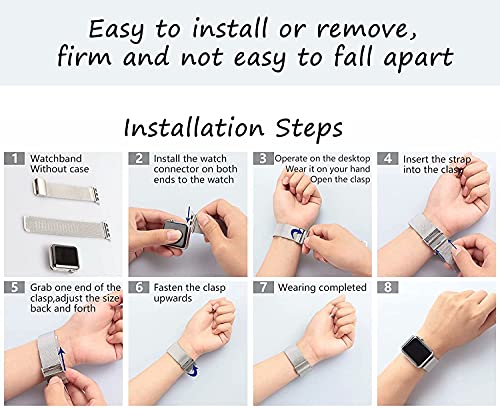Abbinamento perfetto - Fibbia di sicurezza per una regolazione infinita. La fibbia è realizzata con fibbia regolabile in acciaio inossidabile elegante, elegante e super resistente, può attaccarsi e bloccarsi perfettamente al tuo Apple Watch in modo preciso e sicuro.