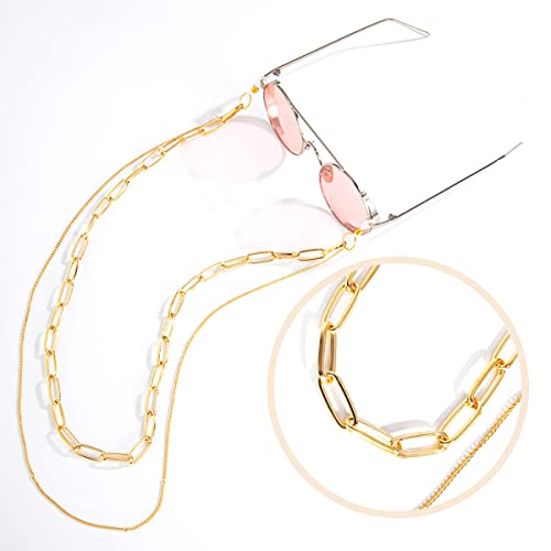Yolito 3PCS catena di occhiali da vista catena in metallo, occhiali da sole alla moda, con cordino e cinturino da collo per occhiali, collana da donna, oro (GC-M), Oro