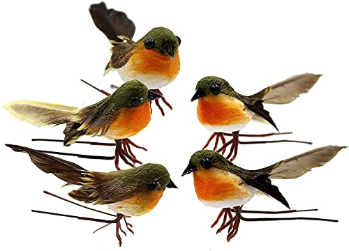 Yolococa Artificiali Uccello Robin Decorazione per Albero di Natale con Piume Artificiali (10 pezzi)