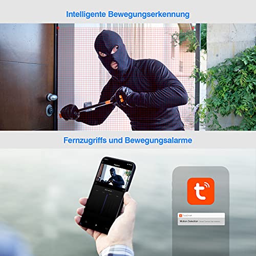 【Controllo Remoto & Archiviazione su Scheda SD】: telecamera di sicurezza è possibile accedere all'applicazione mobile Tuya della telecamera (supporta Android e IOS) per monitorare e controllare la telecamera a distanza in qualsiasi momento, slot per scheda SD supp