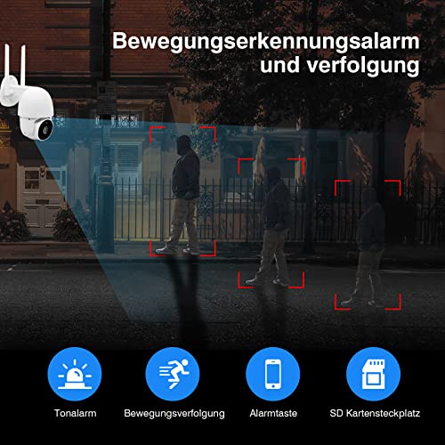 YoLuKe 1080P PTZ WiFi Alexa Camera,Telecamera Outdoor di Sorveglianza Esterna WLAN 355°/90° Ruotabile, attivazione con solo movimento,Tuya Smart Life App,Audio Bidirezionale,IR 30m,IP66,128G SD Slot