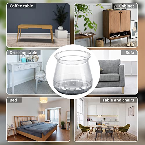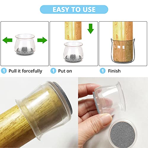 Alta Trasparenza: Le tappi per sedie sono fatte di silicone trasparente di alta qualità, che è poco visibile ed è bello da mostrare il legno sottostante. Permetterà alle gambe della tua sedia di mostrare il loro colore originale, e le tappi per sedie saranno facilmente ignorate.