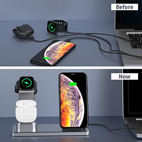 【Stazione di ricarica 3 in 1】 Funziona come prodotti iPhone e tutte le strutture abilitate Qi dock di ricarica wireless. I migliori angoli di design tengono il tuo iWatch, iPhone, AirPods stretto e robusto e nasconde perfettamente i cavi di ricarica sotto il seminterrato. Nota: per ottenere una ricarica ad alte prestazioni, si consiglia di caricare iwatch / AirPods con i cavi originali (non inclusi)