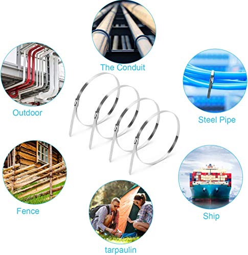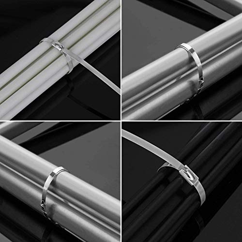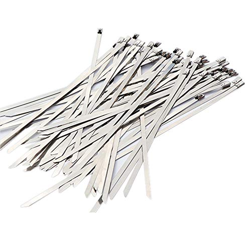 Yomiro 100 Fascette Stringicavo in Acciaio Inox, 300 mm, per la Gestione dei Cavi, Resistenti ai Raggi UV, per la Protezione del Calore, per lo Scarico, in Metallo (100 Pezzi, Argento)