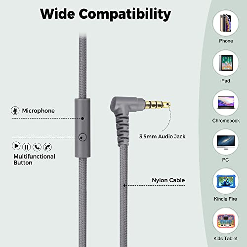 【Microfono Integrato】 Questo auricolari con filo ha un microfono integrato di alta qualità per chiamate in vivavoce, molto adatto per l'ufficio, la casa e l'intrattenimento all'aperto. Dotate di un cavo in nylon intrecciato lungo e resistente di 1,5 m, queste cuffiette per bambini non si attorcigliano.