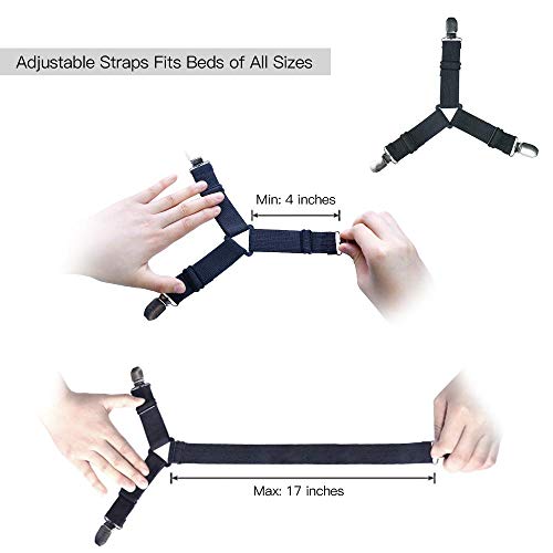 YOMYM Ferma Lenzuola Clip Lenzuola 4 Pezzi Lenzuola Bretelle Regolabili Elastici 3-Modi Triangolo Lenzuola con Pinze Clip per Angoli Lenzuola Accessori per Biancheria da Letto