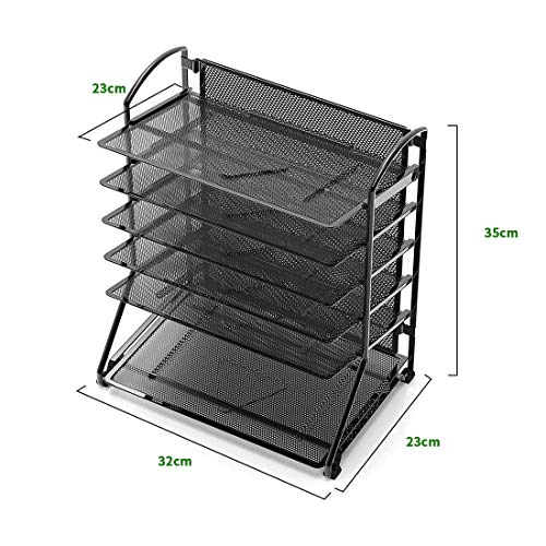 YOMYM 6 Floors Courier Bin Organizer per Ufficio A4 Supporto per Portadocumenti per Documenti Mesh Supporto per File Metallici Wide Version (Nero)