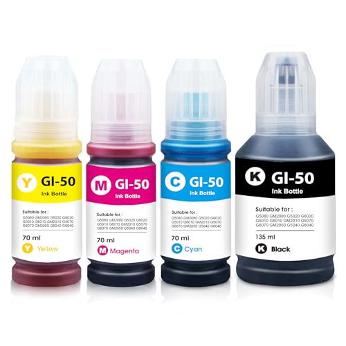 B-T Yongairuink GI-50 GI50 GI 50 Inchiostro compatibile con CAN GI-50BK GI-50C GI-50M GI-50Y 3386C001 3403C001 3404C001 3405C001 per CAN GM2050 50 G5 050 G6050 G7050 Stampante (Nero Ciano Magenta