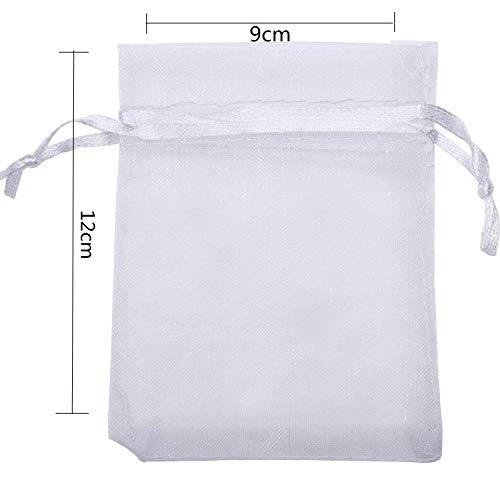 Yongbest Sacchetti Regalo in Organza,100 Pezzi Sacchettini Piccolini Borsa di Organza Bomboniera Candy Portamonete per Bomboniera Bianco 9x12cm