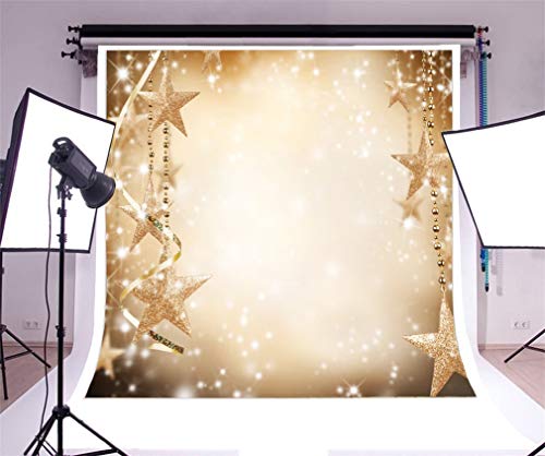 YongFoto 2x2m Sfondo Fotografico Natale Golden Stars Ribbon Aloni Bokeh Paillette glitterate sfocate Felice anno nuovo Fondale Foto Festa Bambini Boby Nozze Adulto Partito Studio Fotografico Puntelli