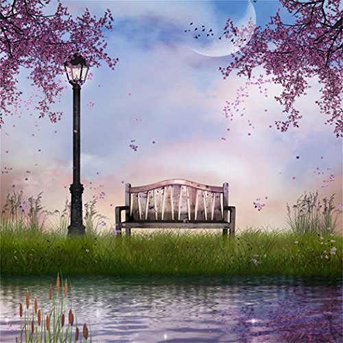 YongFoto 2x2m Vinile Sfondo Fotografico Dreamland Garden Sedia in legno Luci da ufficio Campo di erba Fiori Fiume Paesaggio di fantasia Fondale Foto Nozze Adulto Partito Studio Fotografico Puntelli