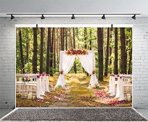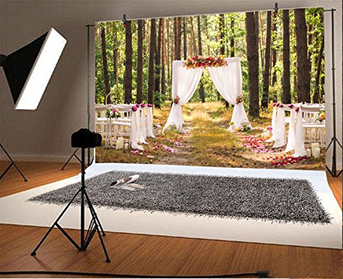 YongFoto 3x2m Fondale Foto Elegante arco nuziale con fiori freschi Fuori in legno vecchio con alberi enormi pini Sfondo Fotografico Photo Booth Partito Nozze Cerimonia Vacanza Photo Studio Puntelli