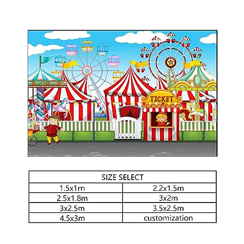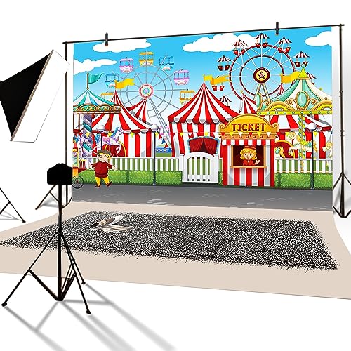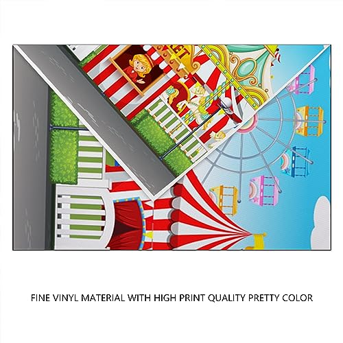YongFoto 3x2m Vinile Fondale Foto Circo Funfair Terreno di gioco Tende Biglietteria Giostra ruota panoramica Sfondo Fotografico Photo Booth Partito Banner Bambini Photo Studio Puntelli