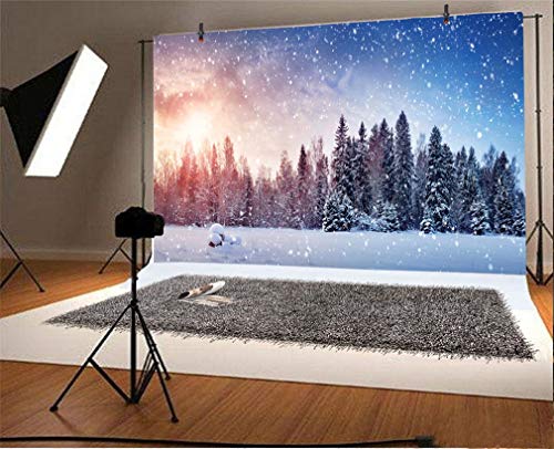 YongFoto 3x2m Vinile Fondali Fotografici Paesaggio invernale innevato Abeti innevati Natura Natale Sfondi Foto Partito Studio Fotografico Puntelli