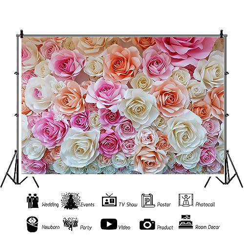YongFoto 3x2m Vinile Sfondo Fotografico atio Fiori di carta Fioritura rosa floreale Fondale Foto Festa Bambini Boby Nozze Adulto Partito Studio Fotografico Puntelli