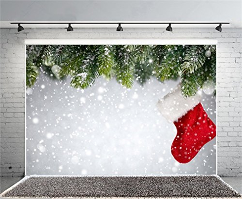 YongFoto 3x2m Vinile Sfondo Fotografico Natale Inverno di ramoscelli di pino calza di stoccaggio Felice anno nuovo Fondale Foto Festa Bambini Boby Nozze Adulto Partito Studio Fotografico Puntelli