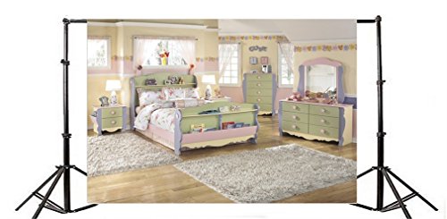 YongFoto 1,5x1m Sfondo Fotografico Interni Kinder House Principessa Condimento Tappeto da tavola Pavimento in legno Divano Letto Tenda Fondale Foto Festa Bambini Boby Nozze Adulto Partito Studio