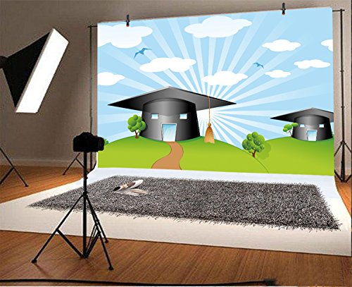 YongFoto 1,5x1m Vinile Fondale Foto Forma di cappello di casa di sparviero Alberi del prato delle colline Shinning Sunlight Uccelli Sfondo fotografico Fotografia Sfondo Studio Prop Decorazione