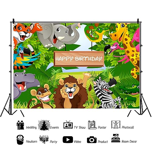 YongFoto 1,5x1m Vinile Sfondo Fotografico Compleanno Animali World Zoo Giraffe Zebra Fondale Fotografico Compleanno Festa Bambini Boby Partito Studio Fotografico Puntelli