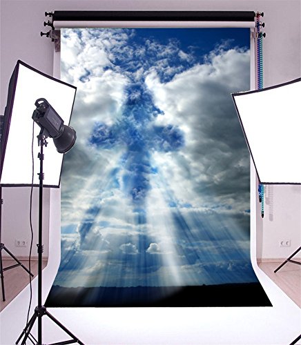 YongFoto 2,5x3m Sfondo Fotografico Cielo blu delle luci sante Cross In The Heaven Nuvola bianca Natura La credenza religione Abatract pregare cultura Fondale Foto Festa Nozze Adulto Partito Studio