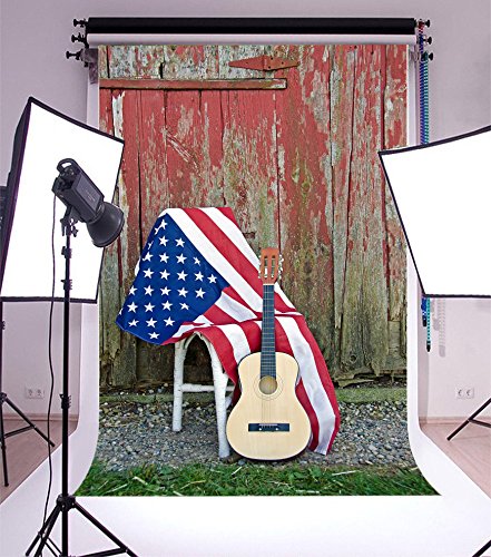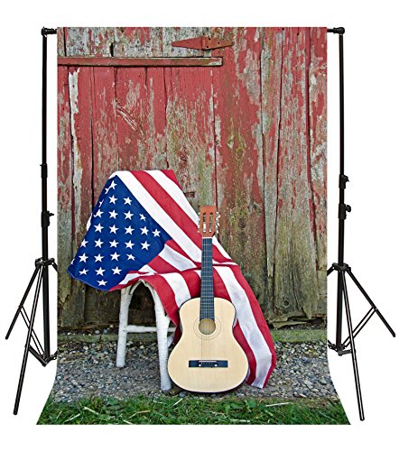 YongFoto 1x1.5m Old Barn fondale bandiera americana e indipendenza giorno sfondo per fotografia West cowboy chitarra strisce shabby legno pavimento in vinile sfondo foto baby studio puntelli