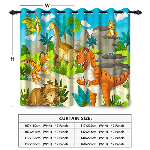 YongFoto Dinosauro Tende Cartoon Dinosauri Triceratopo Pterodattilo fiume 2 pannelli per tende Drappo per Bambini Nursery Ragazzo Home Imposta 132cm larghezza per 214 centimetri alto