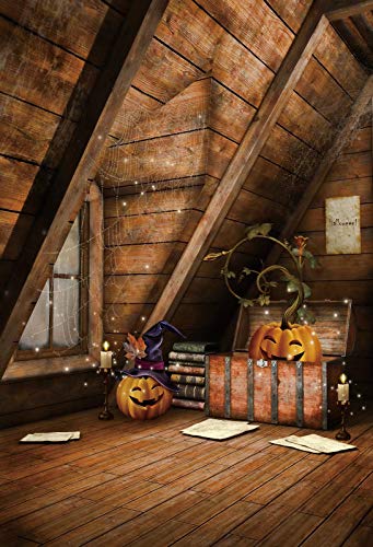 YongFoto 1x1,5m Halloween Fondale Vecchio Squallido Casa di legno Fotografia Zucca Valigia Finestra Poster Sfondo Dolcetto o scherzetto Halloween Foto Festa Decorazione