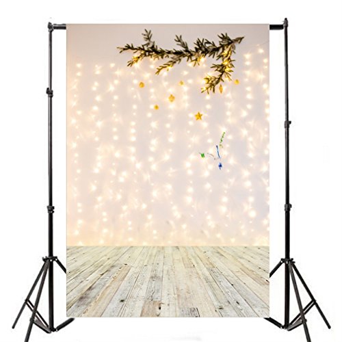 YongFoto 1,5x2,2m Sfondo Fotografico Christmas Twinkle Stars Pine Twigs Shining Lights Curtain Ric Stripes Wood Floor Fondale Foto Festa Bambini Boby Nozze Adulto Partito Studio Fotografico Puntelli