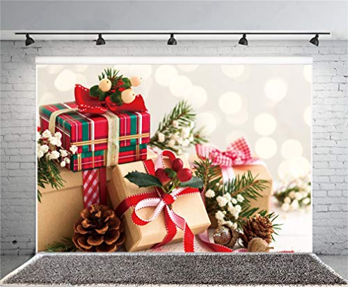 YongFoto 2,2x1,5m Sfondo Fotografico Natale I regali Frutti rossi dei ramoscelli verdi pigna Aloni Bokeh Paillettes Glitter Xmas Fondale Foto Festa Bambini Boby Nozze Adulto Partito Studio Puntelli